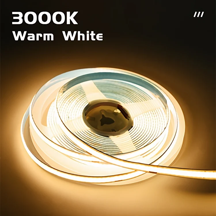 Taśma COB 3000K 5V specjalnie zaprojektowana temperatura barwowa 3000K, zapewniająca ciepły i komfortowy efekt świetlny, odpowiednia do salonu, sypialni, jadalni i innych scenerii mieszkalnych, tworząc ciepłą atmosferę w domu